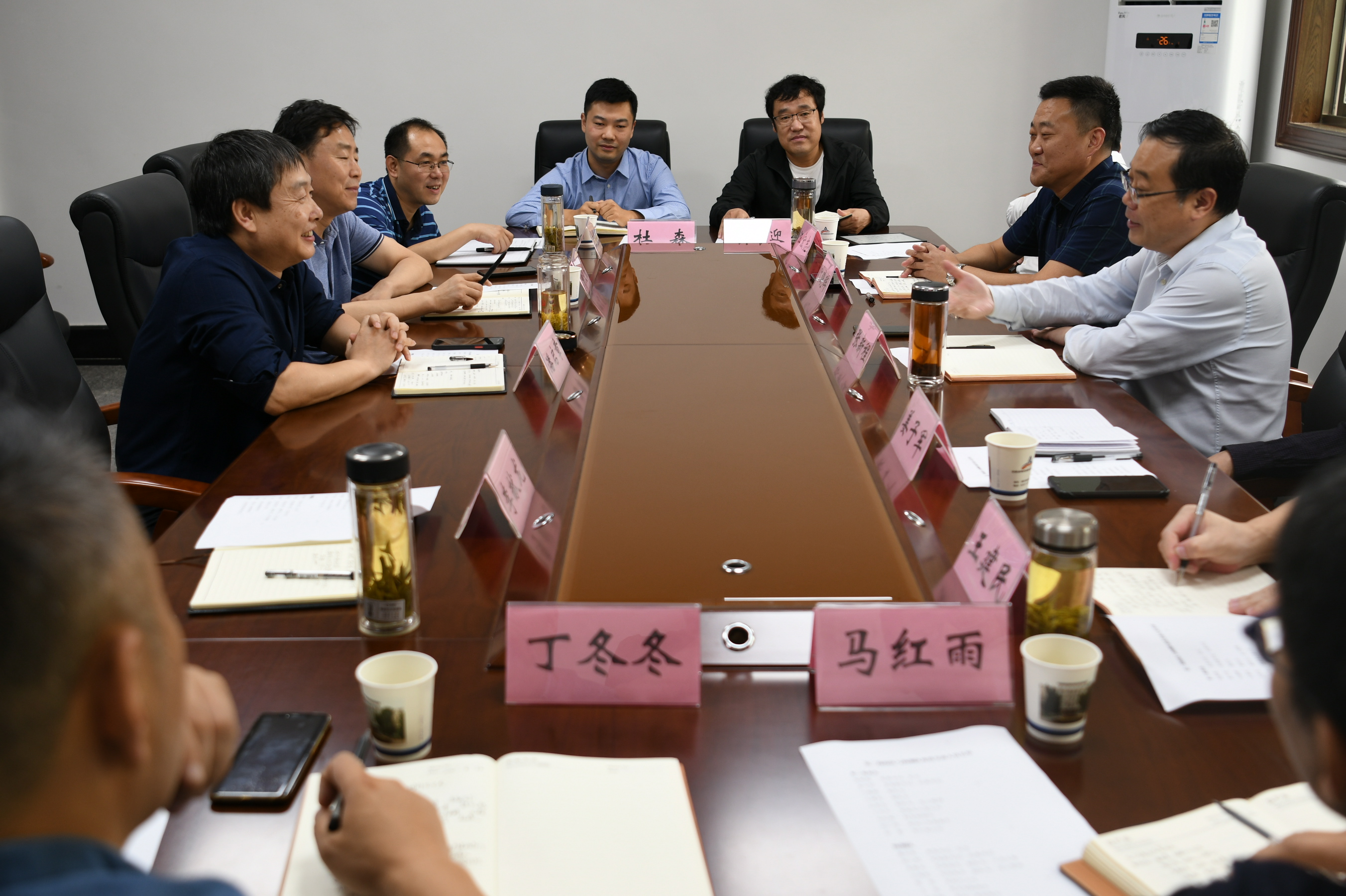 8月30日,第三勘探队党委书记、队长张新程一行来物测队走访交流。队党委书记、队长潘启章出席并主持座谈会。 在座谈会上,队党委书记、队长潘启章对第三勘探队张新程一行来访表示热烈欢迎,并简要介绍物测队主业发展、生产经营等方面的情况,希望两队继续深化交流合作,共同发展。 张新程对物测队热情接待表示感谢,对物测队推动高质量发展所取得的成绩给予高度赞誉,随后介绍了第三勘探队近年来推动改革发展、内部管理、市场开拓、制定激励措施等方面情况。 座谈会上,双方着重围绕市场开发、内部管理、技术合作等内容进行了深入探讨。双方表示,将继续加强沟通交流,各展所长、推动优势互补,互帮互助,共谋发展。 第三勘探队队领导姜子军、叶晓辉、王建民、汪宏志和相关部室部室负责人参会,物测队队领导柳义明、李献龙、王海波和相关部室负责人参加了交流会。