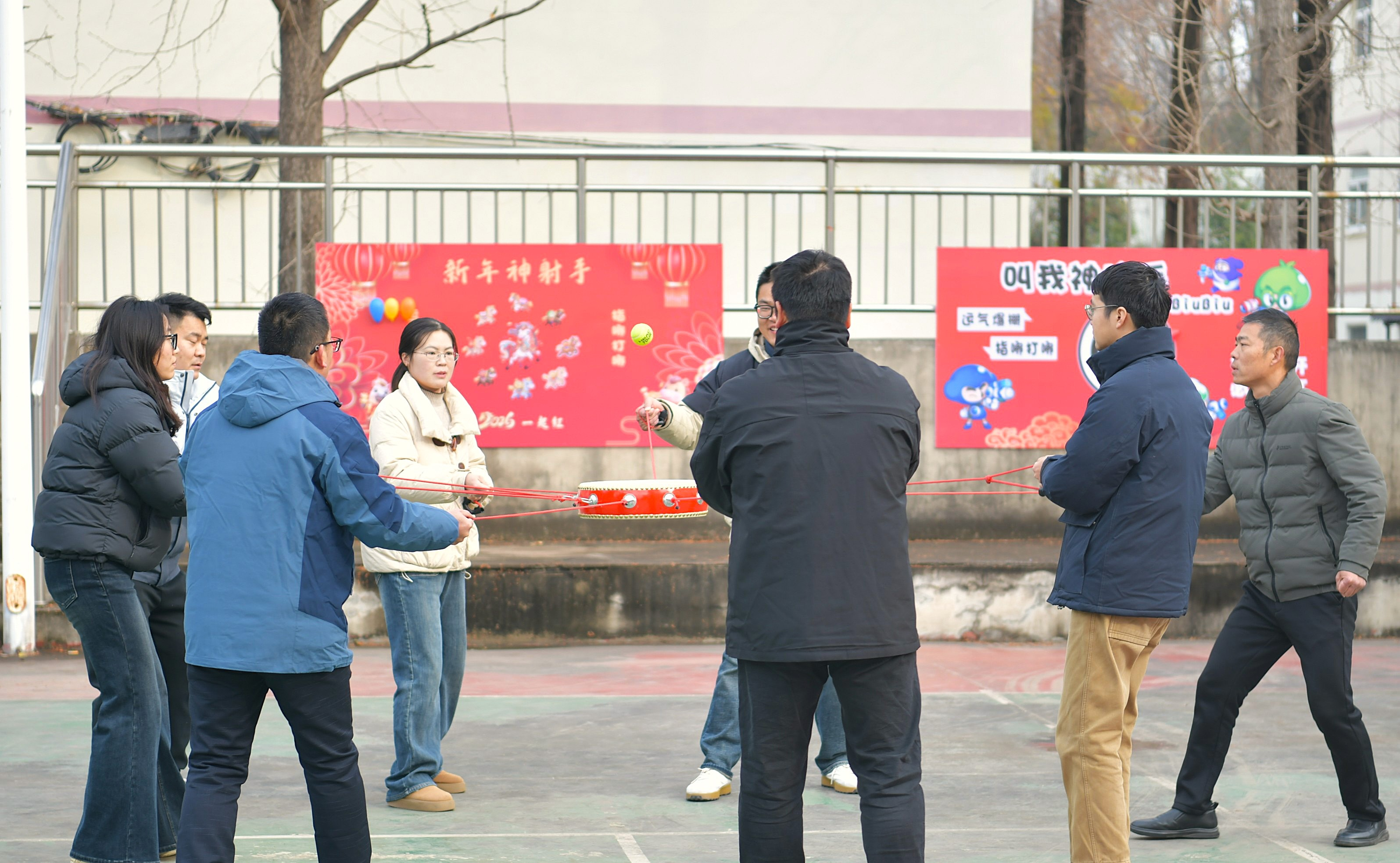 图为同心击鼓活动现场 在射击气球活动中,职工们手持塑料道具枪,在5米外瞄准固定的气球靶标进行射击。随着裁判一声令下,现场响起此起彼伏的“砰砰”声,气球爆裂的瞬间,标有奖品名称的纸条也纷纷飘落,引来观众的阵阵欢呼。一名五发连中的职工分享道:“平时工作忙,这次活动让我找回了儿时的快乐,也锻炼了手眼协调能力”。