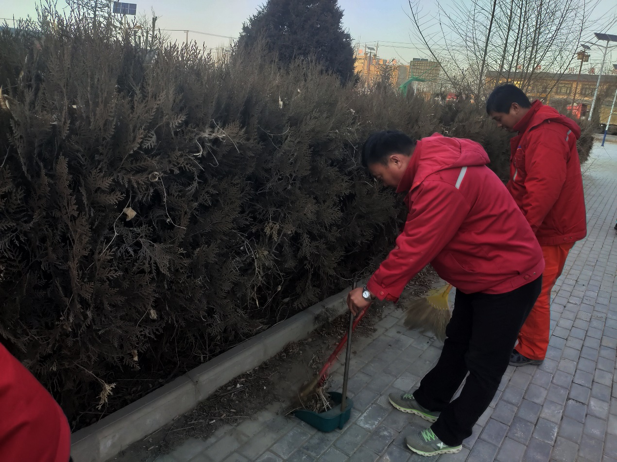 开展一次义务劳动。甜水堡项目部驻地旁边的一个广场,是项目部成员休闲娱乐的主要场所,为使大家有一个卫生舒适的工作和生活环境,团支部组织青年职工开展义务劳动,打扫广场附近的绿化带及路面的卫生。大家带着扫帚、簸箕等工具,相互配合,认真、细致地打扫每一个角落,经过大家的努力,整体环境明显改善,周边绿化带也变得干净整洁。