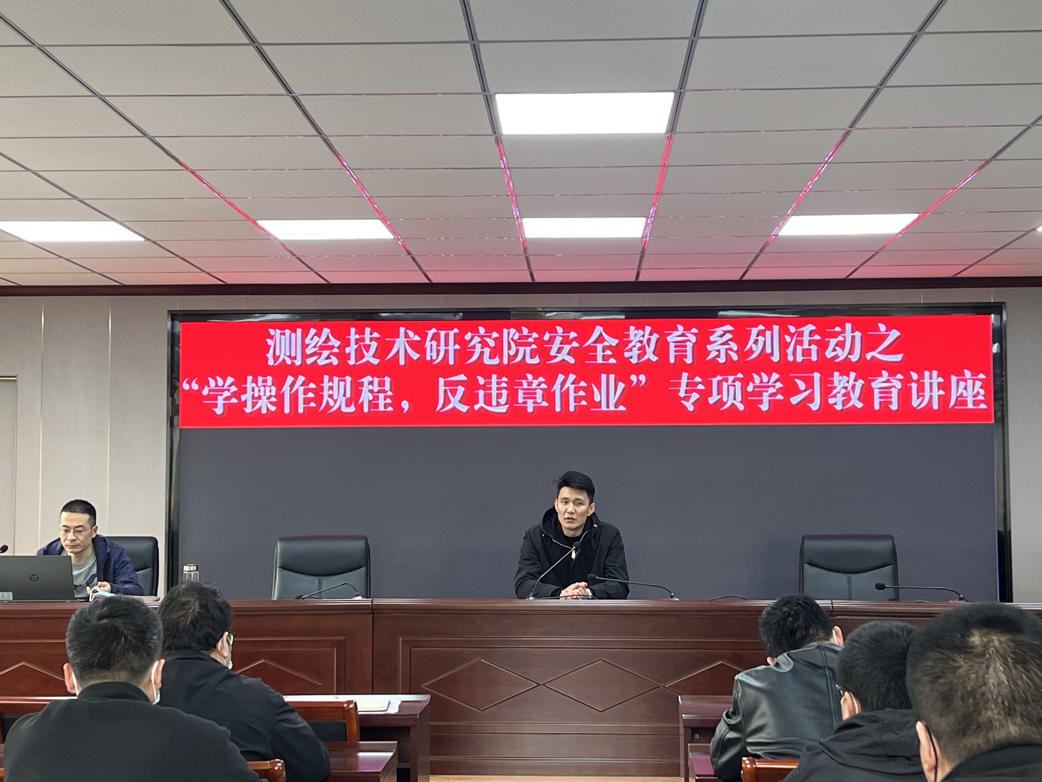为增强职工安全意识,有效防范和遏制安全生产事故,4月13日下午,测绘技术研究院在队四楼会议室举办了“学操作规程,反违章作业”专项学习教育讲座培训。在队部的测绘技术研究院职工参加了现场培训,舒城、灵璧项目部职工通过网络直播形式参加培训。