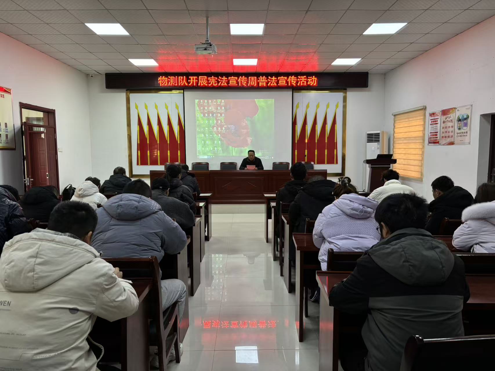 为深入学习宣传贯彻习近平法治思想,推动宪法深入人心,12月17日,物测队组织开展宪法宣传周普法宣传活动。 活动通过举办宪法知识讲座、发放普法宣传资料、案例解析、现场互动答疑等形式,向职工宣传讲解宪法、矿产资源法等方面的法律知识,将抽象的法理转化为贴近生活的实践指引。 此次普法宣传活动,让职工对宪法有了更直观、深刻的认识,营造了尊法、学法、守法、用法的良好氛围。 下一步,物测队将以此次宪法宣传周活动为契机,深入开展法律法规宣传活动,进一步推动宪法精神和法治理念深入人心。同时不断创新宣传形式,将法治宣传工作做深做细,大力弘扬宪法精神,提升干部职工法治素养。