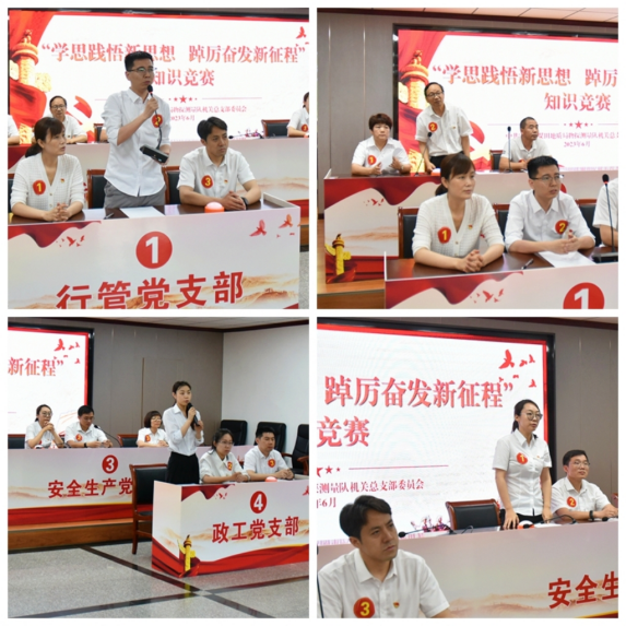 6月26日上午,物探测量队机关党总支部开展“学思践悟新思想 踔厉奋发新征程”知识竞赛,政工党支部、行管党支部、安全生产党支部、后勤服务党支部4支代表队参加了比赛。队党委副书记、纪委书记、机关党总支部书记柳义明,政治部部长陈振江,机关党总支部副书记徐平观看了竞赛并为获奖代表队颁奖。 本次知识竞赛采取线上线下相结合方式进行,初赛采用线上答题方式,活动在四月、五月举行,通过初赛各党支部分别选拔3位选手参加知识竞赛决赛。并从参赛选手中好中选优,推荐5名选手参加省直机关工委举办的“学思想、强党性、共奋斗”知识挑战赛。 通过本次知识竞赛,激发了党员干部的学习热情,检验了学习效果,使党员干部在今后的学习中补短板、强弱项、提质量,努力在以学铸魂、以学增智、以学正风、以学促干方面取得实实在在的成效。