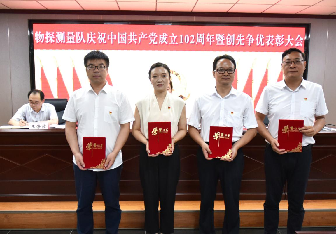 6月29日,物探测量队召开庆祝中国共产党成立102周年暨创先争优表彰大会。表彰队2023年度优秀共产党员、优秀党务工作者和先进党支部。队党委副书记、纪委书记柳义明主持会议并作党课报告,队党委委员、副队长、工会主席李献龙,队党委委员、副队长、总工程师王海波出席会议。 大会首先宣读了对政工党支部等3个先进党支部、刘运超等16名优秀共产党员、陈振江等4优秀党务工作者的表彰决定,并举行颁奖仪式。 柳义明代表队党委,向受到表彰的先进党支部、优秀共产党员、优秀党务工作者表示热烈的祝贺!向全队党员致以节日的问候和崇高的敬意!号召全队党员要以先进典型为榜样,忠诚尽职、勇毅笃行,比学赶超、创先争优,为推动物测队高质量发展而不懈奋斗。 会上,参会人员集体重温入党誓词,表达了对党忠诚、为共产主义事业奋斗终生的决心。 随后,柳义明以《深入学习贯彻习近平新时代中国特色社会主义思想 奋力开创物测队高质量发展新局面》为题作党课报告。 党课报告强调,要深刻认识和把握开展主题教育的重大意义。开展好主题教育是确保全党坚定拥护“两个确立”、坚决做到“两个维护”的必然要求,是统一全党思想意志行动、始终保持党的强大凝聚力、战斗力的必然要求,是新时代、新征程开创事业发展新局面的必然要求,是深入推进全面从严治党、以党的自我革命引领社会革命的必然要求。 党课报告指出,要锚定目标任务,推动主题教育往深里走、往实里走、往心里走。把学习贯彻习近平新时代中国特色社会主义思想作为终身必修课,在“深化”上下功夫、在“内化”上见真章、在“转化”上求实效,完整准确掌握这一思想的科学体系,全面把握这一思想的世界观、方法论和贯穿其中的立场观点方法,努力在以学铸魂、以学增智、以学正风、以学促干方面取得实实在在的成效。 党课报告强调,要以主题教育的开展实效,奋力开创物测队高质量发展新局面。把扎实开展好主题教育,与贯彻落实党中央、省委、局党委工作部署要求结合起来,与加快推进物探测量队高质量发展结合起来,与推动中心工作结合起来,在履行主责主业上开动脑筋,在立足岗位争先创优上见到行动。聚焦局、队党委全年工作部署,全力以赴抓好经济发展和党建工作各项重点任务的落实,把在主题教育中焕发出来的学习工作热情转化为攻坚克难、干事创业的强大动力,确保完成全年工作任务,为物测队高质量发展作出新的更大贡献。 队机关党总支副书记、各党支部书记、全队副科级以上干部、团支部书记,受表彰对象代表参加会议。