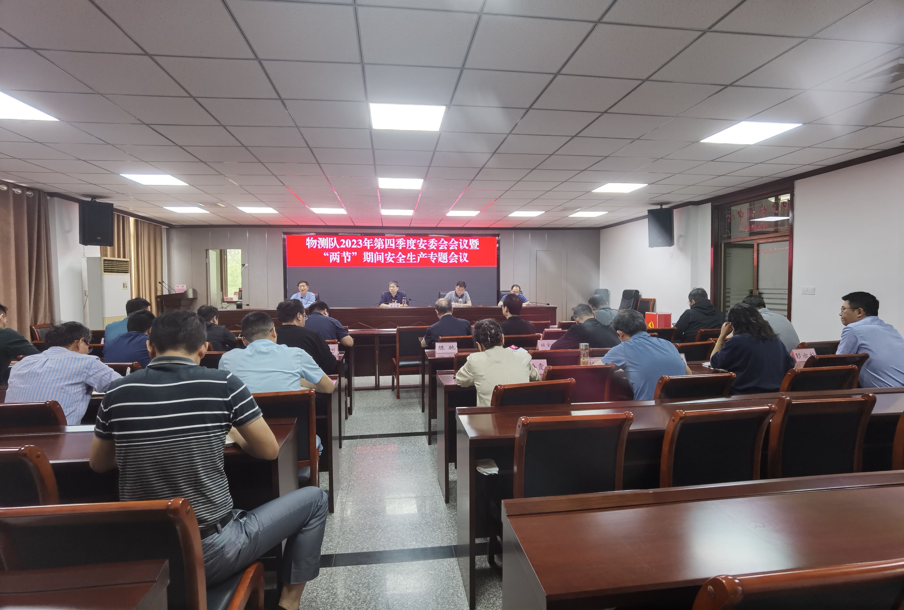 9月28日,物测队召开2023年第四季度安委会会议暨“双节”期间安全生产专题会议。党委书记、队长潘启章主持会议并讲话。队党委委员、副队长李献龙作安全生产工作汇报。党委副书记、纪委书记柳义明,副队长、总工程师王海波及队安委会成员参加会议。 会议学习传达局第三季度安委会会议精神;学习习近平总书记关于安全生产及防汛救灾工作重要指示批示精神;学习8月8日李强主持召开国务院常务会议精神;学习9月22日国务院安委办、应急管理部调度部署中秋国庆和亚运会期间安全防范工作会议精神;学习8月21日省委常委会议精神;学习9月18日应急管理部党委会部务会精神。 队党委委员、副队长李献龙总结三季度安全生产工作,并对四季度安全工作进行部署。讲话要求,要扎实做好“两节”期间的应急值班值守,确保假期安全、和谐、稳定;抓好四季度全队安全生产工作,讲话从六个方面做出了具体要求;抓好“反三违”专项行动,全力保障年底前全年安全目标的完成。 党委书记、队长潘启章总结讲话强调,一是在思想上要重视安全生产工作,着力解决如何加强思想认识的问题;二是要具体抓工作的落实,对安全生产工作上的问题要做到“从严、从实、从细”,具体到责任制的落实、安全体系的建设、风险隐患的排查等工作;三是各单位负责人会后及时传达会议精神,做好节假日期间办公区安全防护及消防工作,提醒广大干部职工安全出行。最后祝愿大家度过一个欢乐,祥和,幸福的假期。