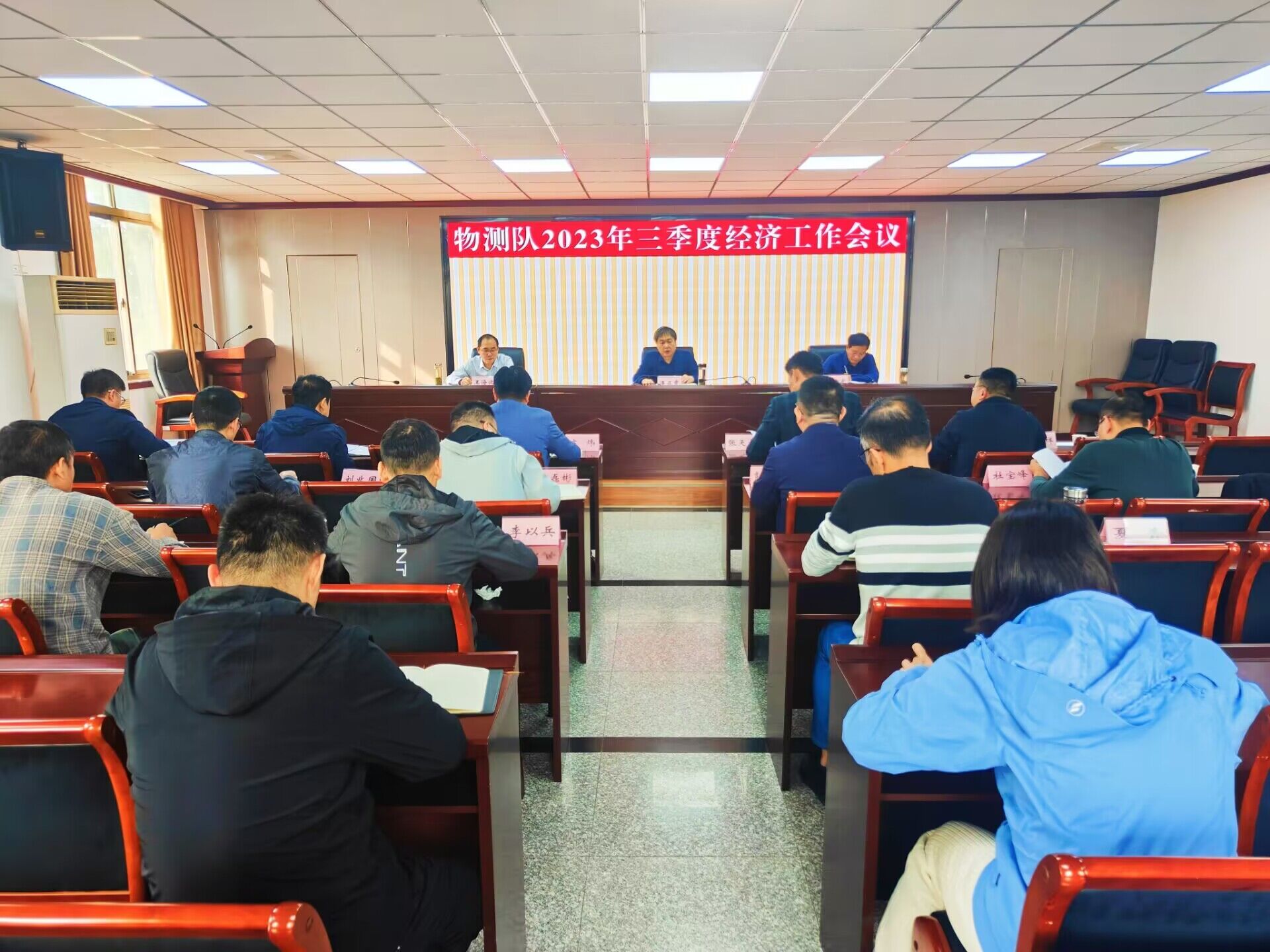 10月9日下午,物测队2023年三季度经济工作会议在机关办公楼四楼会议室召开,队党委书记、队长潘启章主持会议并讲话,队领导李献龙、王海波出席会议,队属单位和机关相关部门负责人参加会议。 会上通报了全队前三季度经济运行情况,队属各单位负责人汇报前三季度生产经营情况及下一步工作安排,各职能部门对经济运行情况进行点评并提出具体要求,队领导结合分管工作提出工作要求及具体工作安排。 潘启章在总结讲话中强调:一要清醒认识当前形势,聚焦发展中存在的突出问题和困难,统一思路、凝聚共识,进一步增强推动高质量发展的责任感、使命感。二要围绕局、队党委工作部署,紧盯目标任务,强化担当作为,全力以赴推进经营收入、市场开发、债权债务清理等各项工作,确保全年目标任务完成。三要以过硬的作风抓落实,提振干事创业精气神,坚定信心,真抓实干,以钉钉子精神落实好各项重点工作任务。对队党政决策部署、工作安排执行不力、落实不到位的,工作效能低下的单位、部门,要落实约谈机制,严肃批评问责。四要持续推进重点工作,强化制度执行,抓质量、保安全,提高生产效益、效率,确保全年工作圆满收官。
