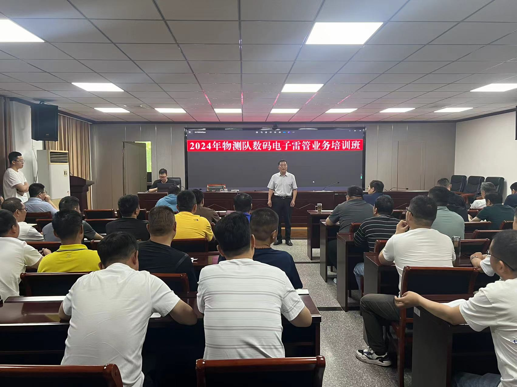 为适应新形势下野外安全生产的需要,5月28日物测队邀请西安庆华厂方技术专家,来我队开办数码电子雷管业务培训班。 武装保卫部联合劳动人事部组织我队50余名涉爆人员进行了理论学习和实际操作,通过此次培训,涉爆人员从思想认识、实际操作技术等方面都得到了很大的提高,为确保我队的野外安全生产打下了坚实的基础。