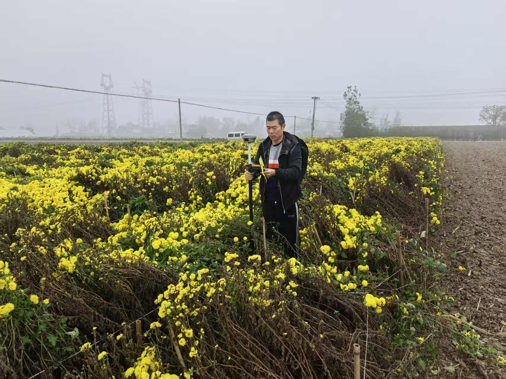 图为钱营孜测量放线项目施工人员在野外采集数据