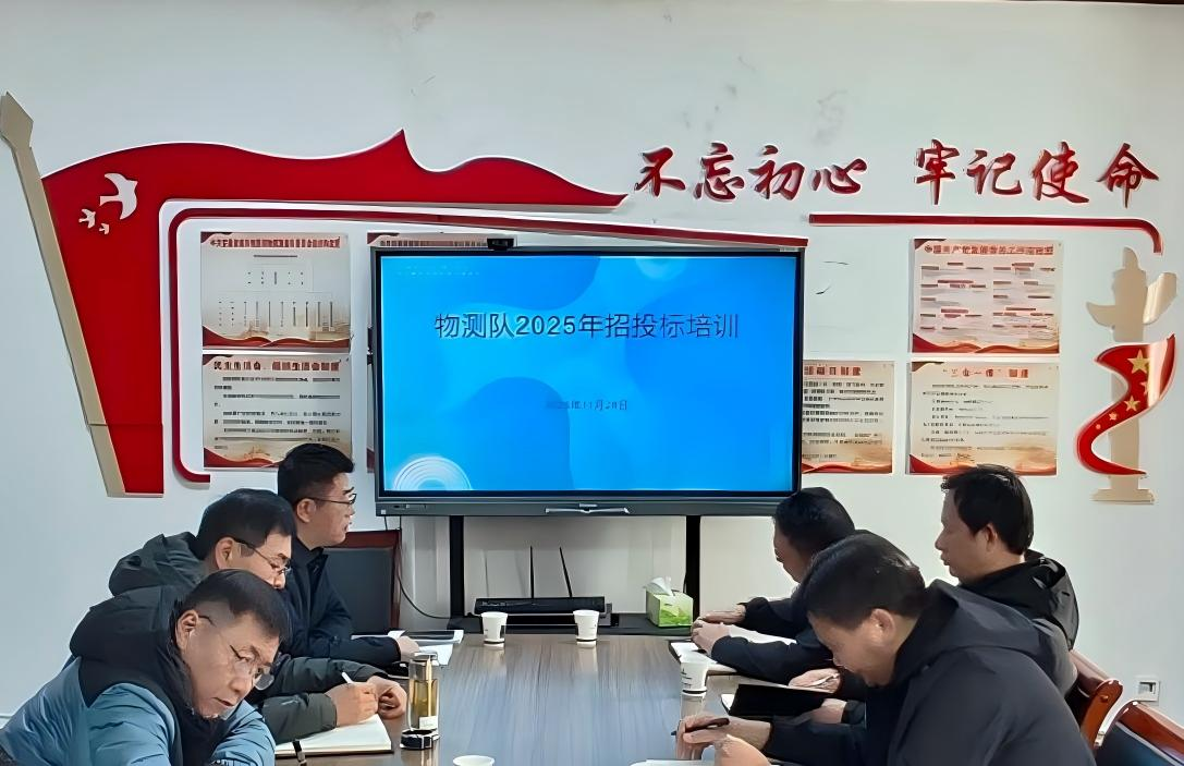 为全面提升我队招投标业务水平,物测队于2025年11月28日上午组织开展了招投标专题培训。 本次培训聚焦招标投标法及政府采购法等法律法规,重点解释招投标关键环节,主要包含四个方面内容,一是明确招投标与政府采购的适用范围、适用依据及法律边界,厘清两者在程序要求与监管重点上的区别;二是结合经营实际,明确掌握招标方式的适用条件及注意事项;三是结合巡视反馈问题,明确招投标工作中存在的风险点并予以防范;四是加强招投标工作规范化,严格落实项目计划,认真编制招标文件,加强合同履约管理。 各单位及经营管理部、财务部、纪检监察室、设备管理部及审计室等相关部门主要负责人参加培训。